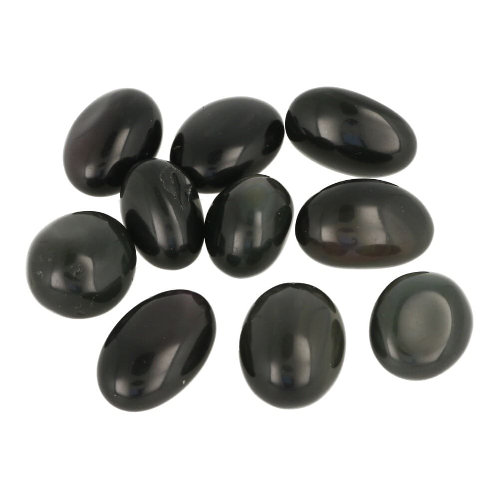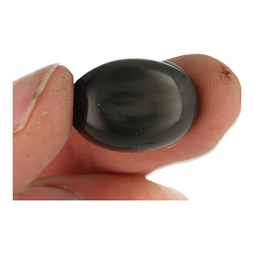 Mooie zwarte regenboog obsidiaan trommelsteen van ongeveer 1-2,5cm lang, 1,5 cm breed en 1,5 cm dik. In het licht komen de verschillende kleuren van de regenboog obsidiaan goed naar voren, in de schaduw lijkt deze trommelsteen bijna zwart. Je ontvangt een soortgelijke trommelsteen als op de foto.