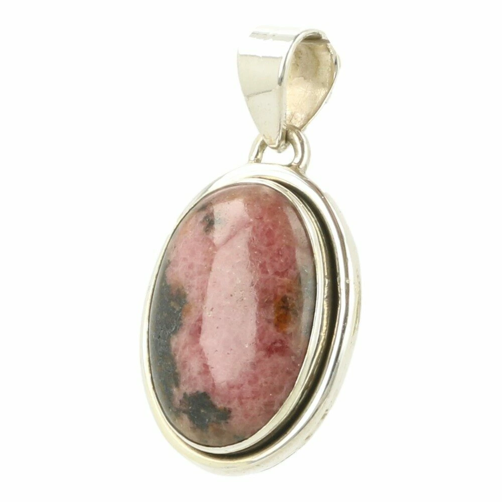 Mooie ovalen rhodoniet hanger in zilver ‘nr8’. De fraai geslepen rhodoniet is gevat in juwelierskwaliteit 925 sterling zilver. De afmeting van de rhodoniet steen in de hanger is ongeveer 21mm hoog en 15mm breed. Je ontvangt de rhodoniet hanger in zilver van de foto.