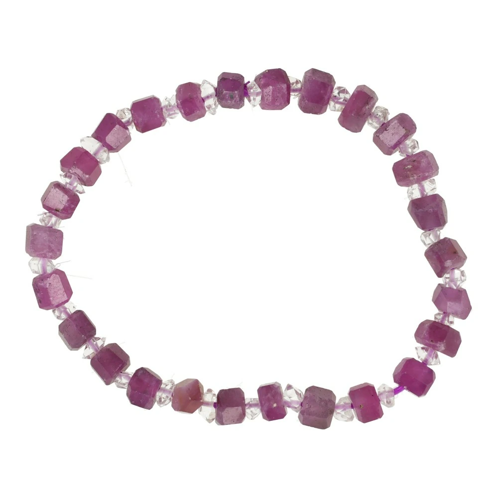 De combinatie van robijn en Herkimer diamond maakt deze armband bijzonder krachtig. Robijn activeert je basischakra en geeft energie, terwijl Herkimer diamond deze energie zuivert, versterkt en richting geeft.