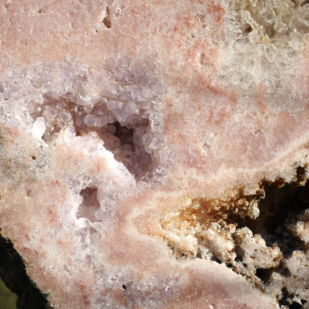 De meest zeldzame en spiritueel krachtige variant komt uit Patagonië (Argentinië), welke in 2017 is geïntroduceerd. Uit onderzoek blijkt dat deze roze amethist is eigenlijk ook een echte amethist is, doordat de kleur wordt veroorzaakt door ijzerdeeltjes in de kristallen, samen met de aanwezigheid van kleine deeltjes hematiet. Het troebele uiterlijk komt door insluitsels van anhydriet (calciumfosfaat). Ze vormt zich in geodes , met een gemiddelde diameter van 5-10cm.