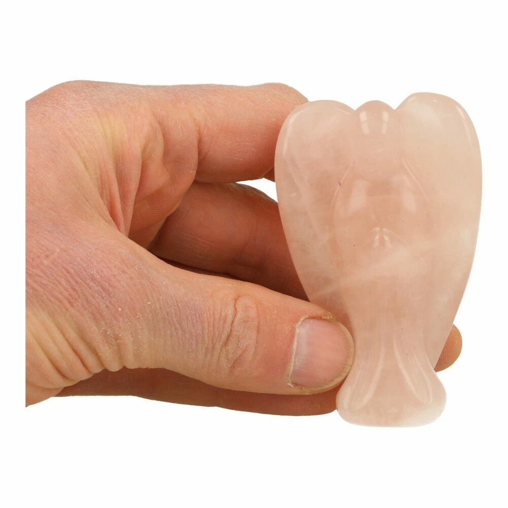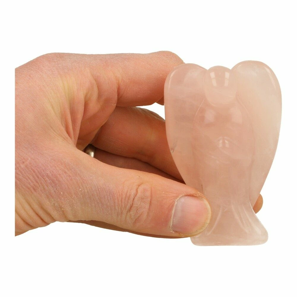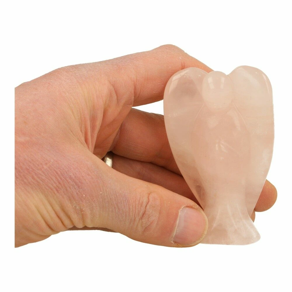Fraaie roze rozenkwarts engel met hoogte van ongeveer 8cm en 5cm breed. Je een soortgelijke rozenkwarts engel als op de foto, we zoeken de meest passende uit voor je.
