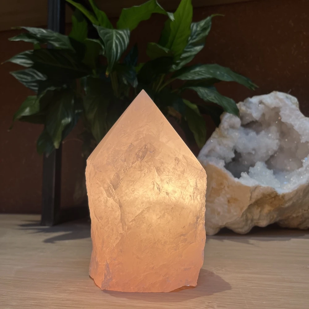 Mooie rozenkwarts lamp punt met een afmeting van circa 18cm hoog en 12cm breed en 10cm diep. Deze ruwe rozenkwarts van mooie roze kwaliteit is in een punt geslepen. Je ontvangt de rozenkwarts lamp punt van op de foto. Je ontvangt deze rozenkwarts lamp inclusief een lampje en netsnoer met schakelaar en stekker.