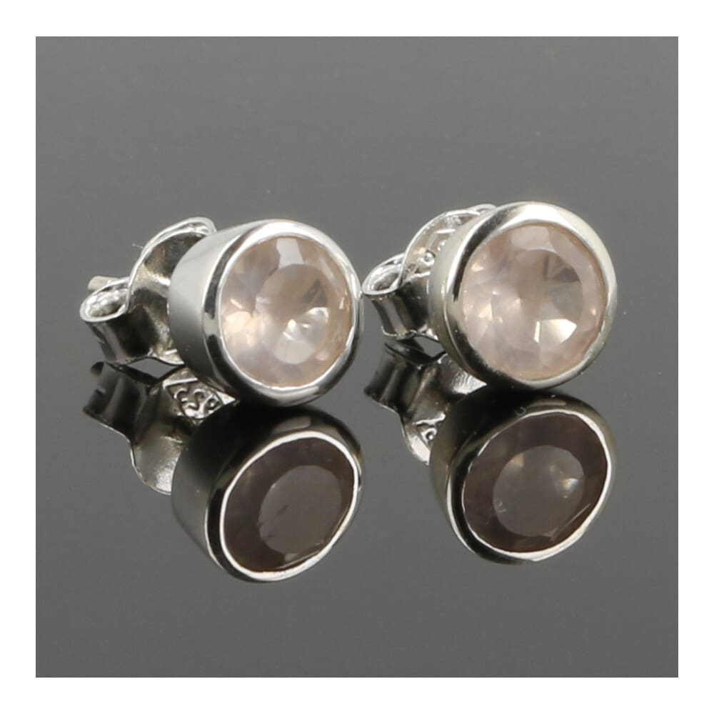 Rozenkwarts oorbel facet geslepen 7mm