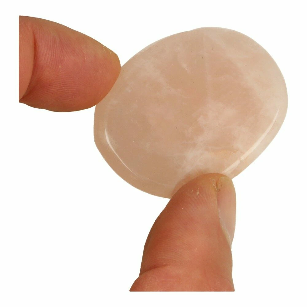 Fijne rozenkwarts zaksteen of oplegsteen van circa 4,5-5cm lang, 4-5cm breed en 1-1,5cm dik. Deze mooie rozenkwarts zaksteen kun je goed gebruiken om bij je te dragen, maar is ook zeer geschikt voor als oplegsteen tijdens meditatie of behandeling. Je ontvangt een soortgelijk rozenkwarts zaksteen als op de foto.