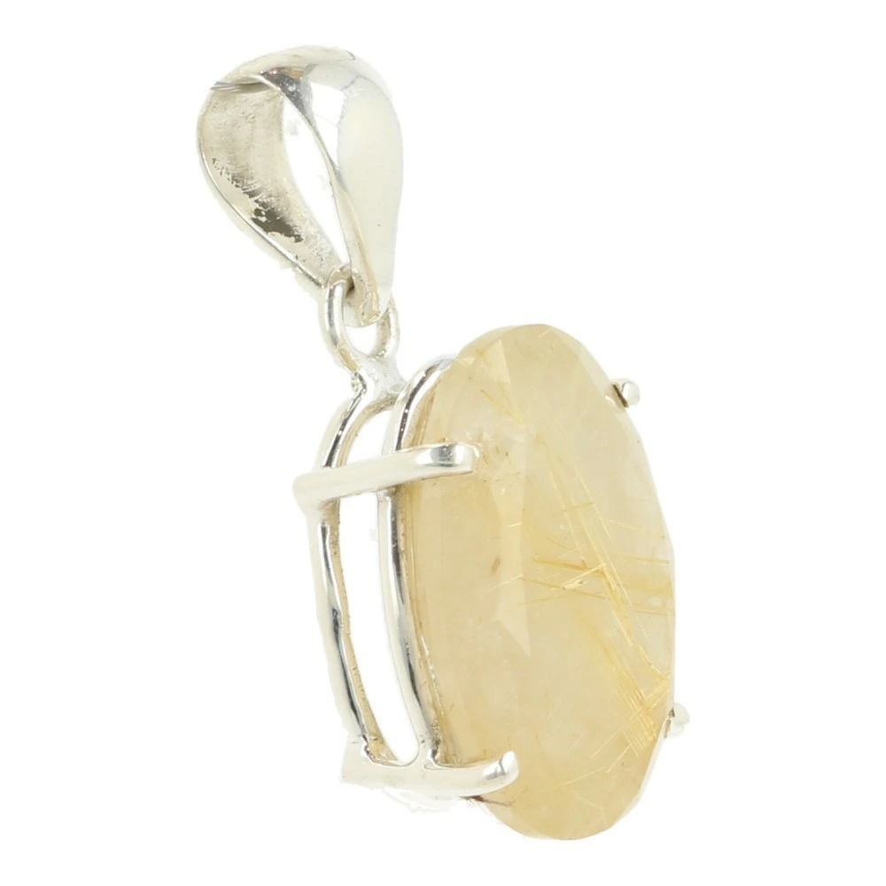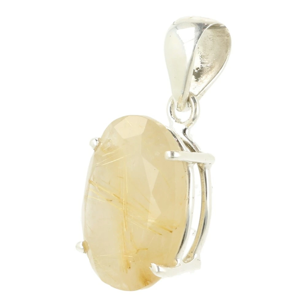 Fraaie facetgeslepen rutielkwarts gevat in juwelierskwaliteit zilver (925 sterling). Je kunt de gouden rutielnaaldjes goed zien in de geslepen bergkristal. De afmeting van de rutielkwarts in de hanger is ongeveer 22mm hoog en 16mm breed. Je ontvangt de rutielkwarts hanger van de foto.