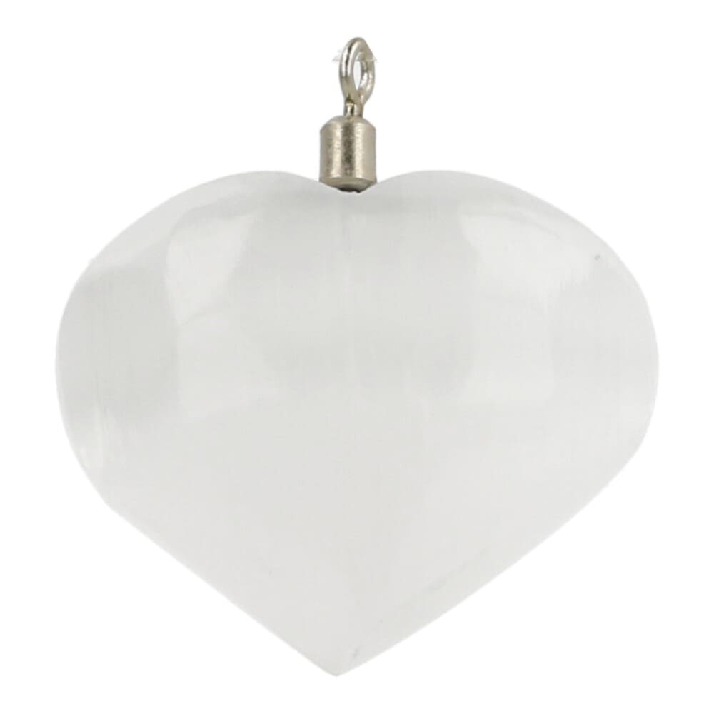 Fijne seleniet hartje hanger met oogje (satijnspaat). Dit fraai gepolijste hartje van seleniet met oogje is ongeveer 3cm breed en 2,5cm hoog. Afhankelijk van het invallende licht kan de kleur meer wit ogen. Seleniet kan beter niet te veel met water in contact komen. Het oogje van de seleniet hartje hanger is klein, waardoor deze niet aan een zilveren ketting te dragen is. Je ontvangt deze hanger met koordje, selecteer bij je bestelling de kleur koord die je wenst.