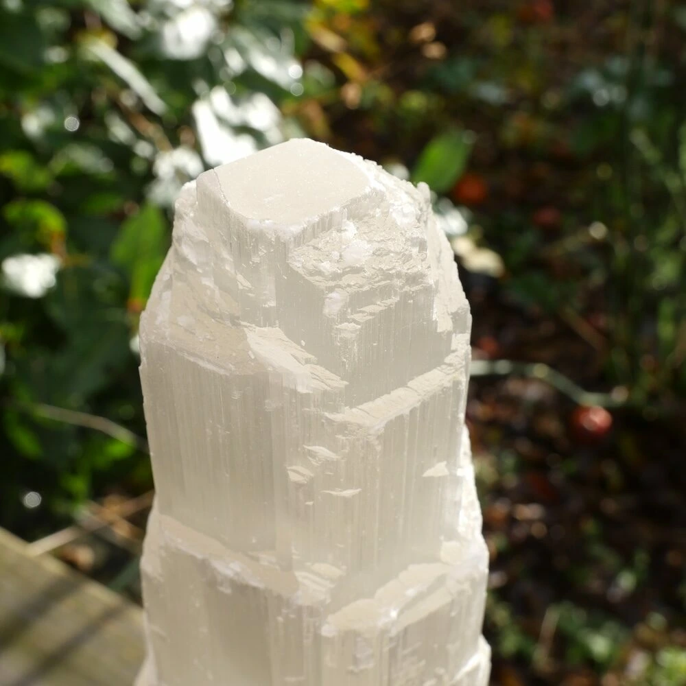 Seleniet verwijdert of overbrugt blokkades en verdichtingen in het energieveld. Ook kun je met selenietstaven hoogfrequente energie door het lichaam sturen en lichamelijke heling stimuleren.