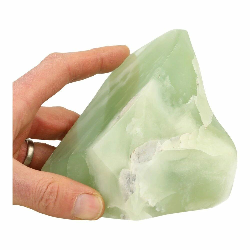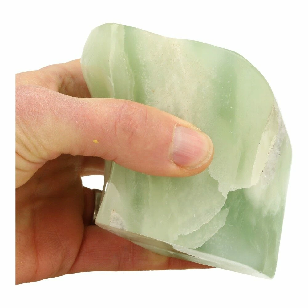 Mooi lichtgroene serpentijn gepolijst met bijzondere vorm uit Afghanistan. Je ontvangt de gepolijste serpentijn vrije vorm van de foto. De afmeting is ongeveer 12cm hoog, 8,5cm breed en 8,3cm diep. De energie van dit stuks zacht en fris en ze nodigt je uit om je frequentie te verhogen.