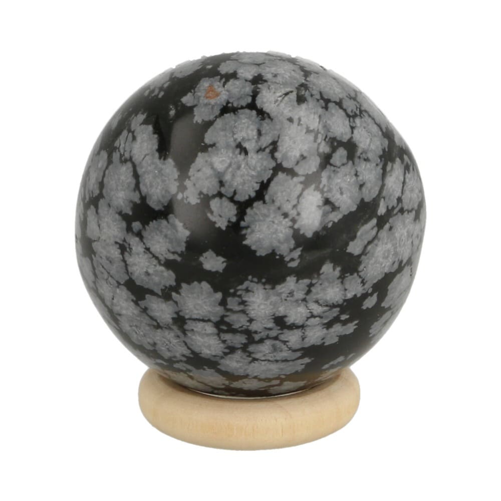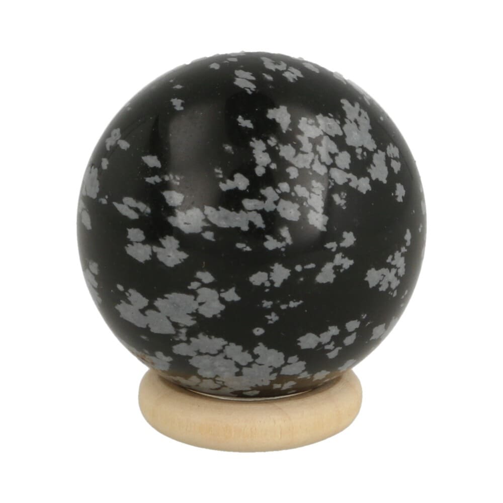Sneeuwvlok obsidiaan bol met een diameter van 30mm en houten ringetje. Iedere sneeuwvlokobsidiaan bol is uniek van tekening, je ontvangt een soortgelijke sneeuwvlok obsidiaan bol als de foto. Wil je weten welke je ontvangt? Zet het als opmerking bij je bestellen en we sturen je vooraf een foto.