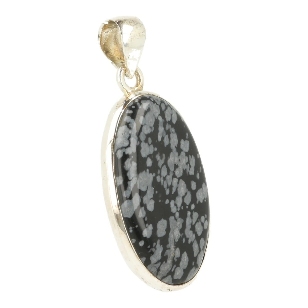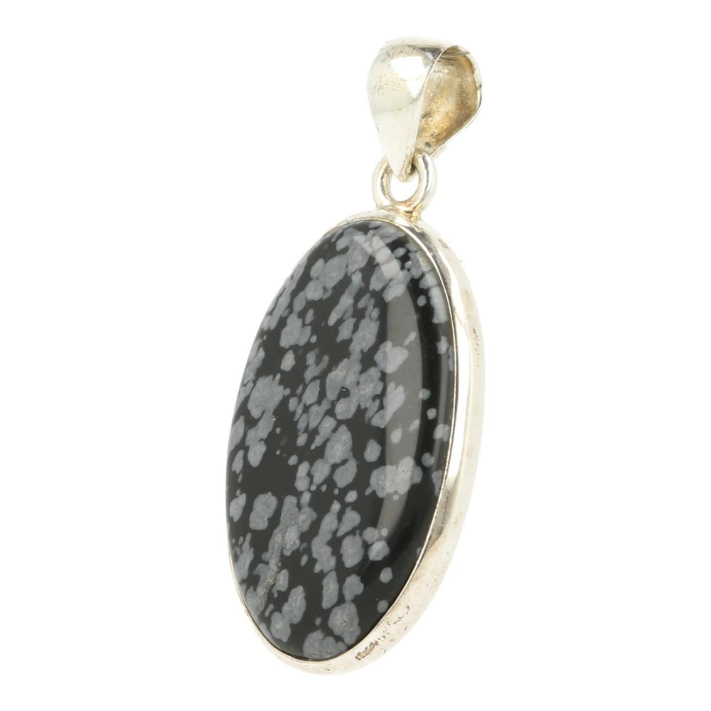 Sneeuwvlok obsidiaan hanger in zilver ‘nr3’. De sneeuwvlok obsidiaan is gezet in juwelierskwaliteit 925 sterling zilver. De afmeting van de sneeuwvlokobsidiaan steen in de hanger is ongeveer 25mm breed en 41mm hoog. Je ontvangt de sneeuwvlok obsidiaan hanger in zilver van de foto.