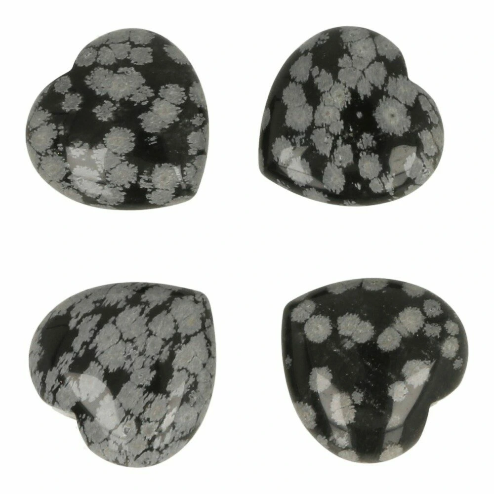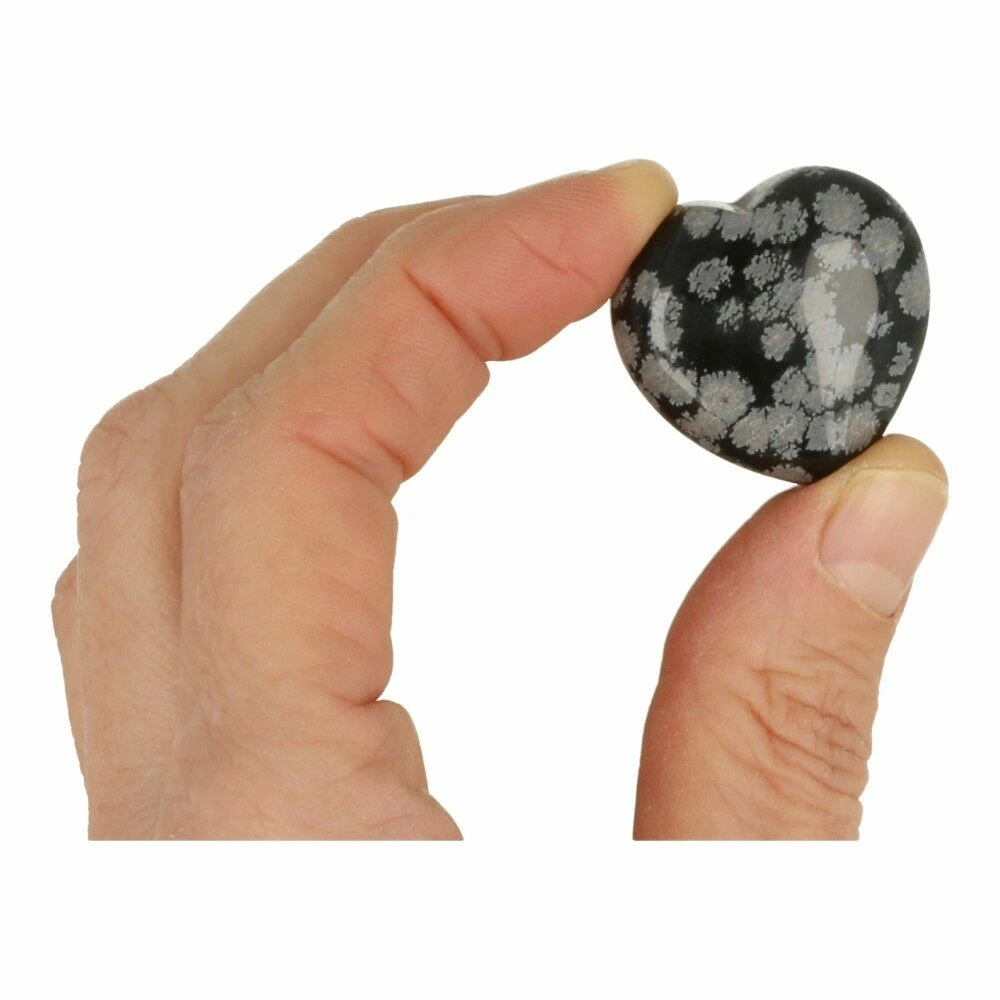 Sneeuwvlokobsidiaan hartje van circa 3cm breed. Je ontvangt een soortgelijk sneeuwvlokobsidiaan hartje als op de foto.