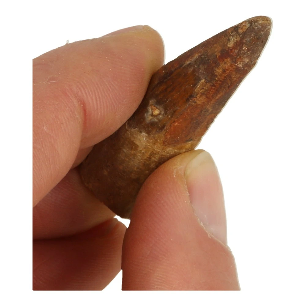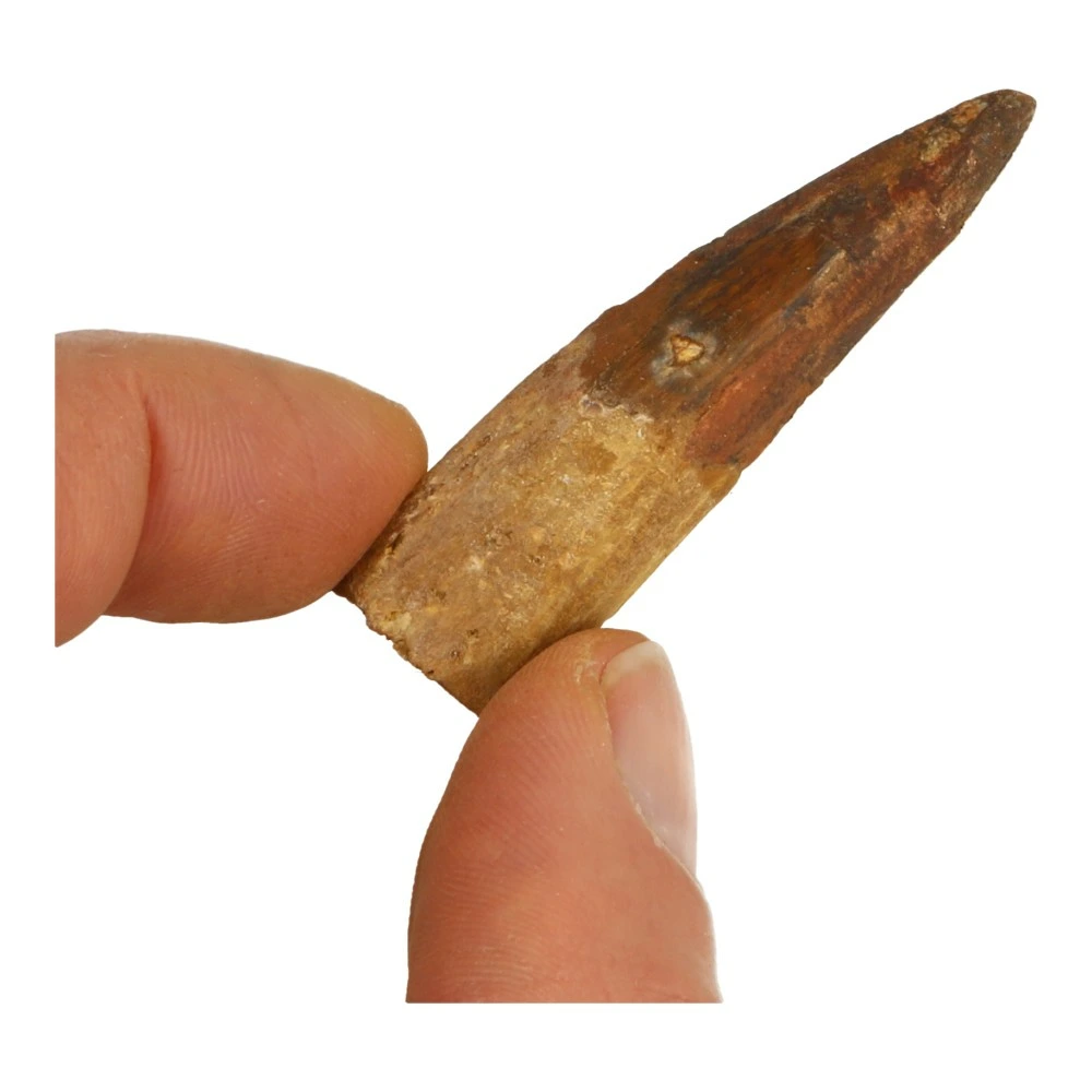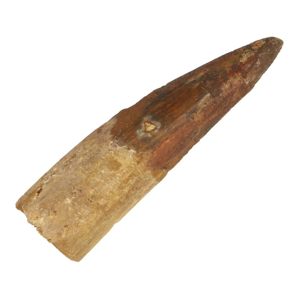 Gave Spinosaurus tand ‘nr10’ van ongeveer 58mm lang. Deze fossiele tand van een echte dinosaurus heeft een breedte van ongeveer 16mm en is ongeveer 11mm dik en is in de Kem Kem groep/bedding gevonden, in de grensstreek van Marokko met Algerije. Naar verluidt stroomde daar vroeger een rivier waar deze dieren in leefden. Je ontvangt de spinsaurus tand van de foto.