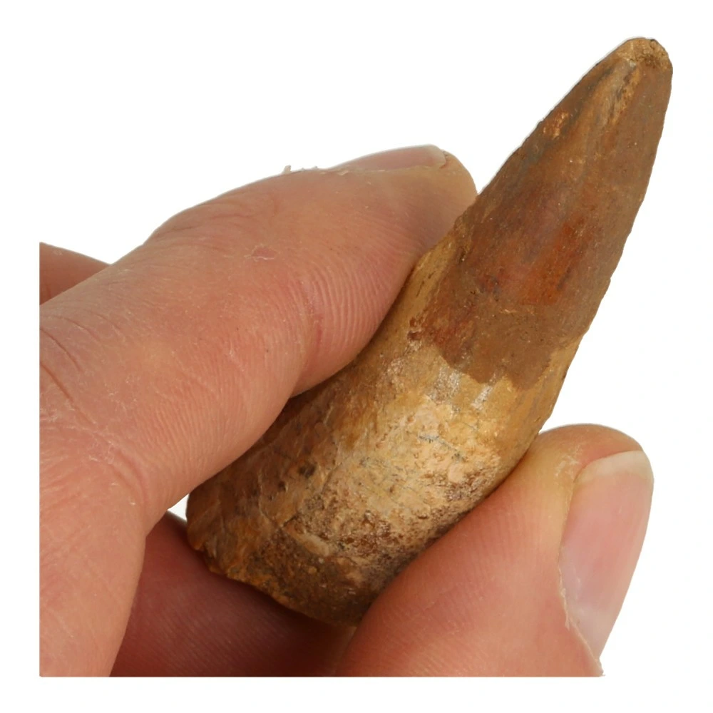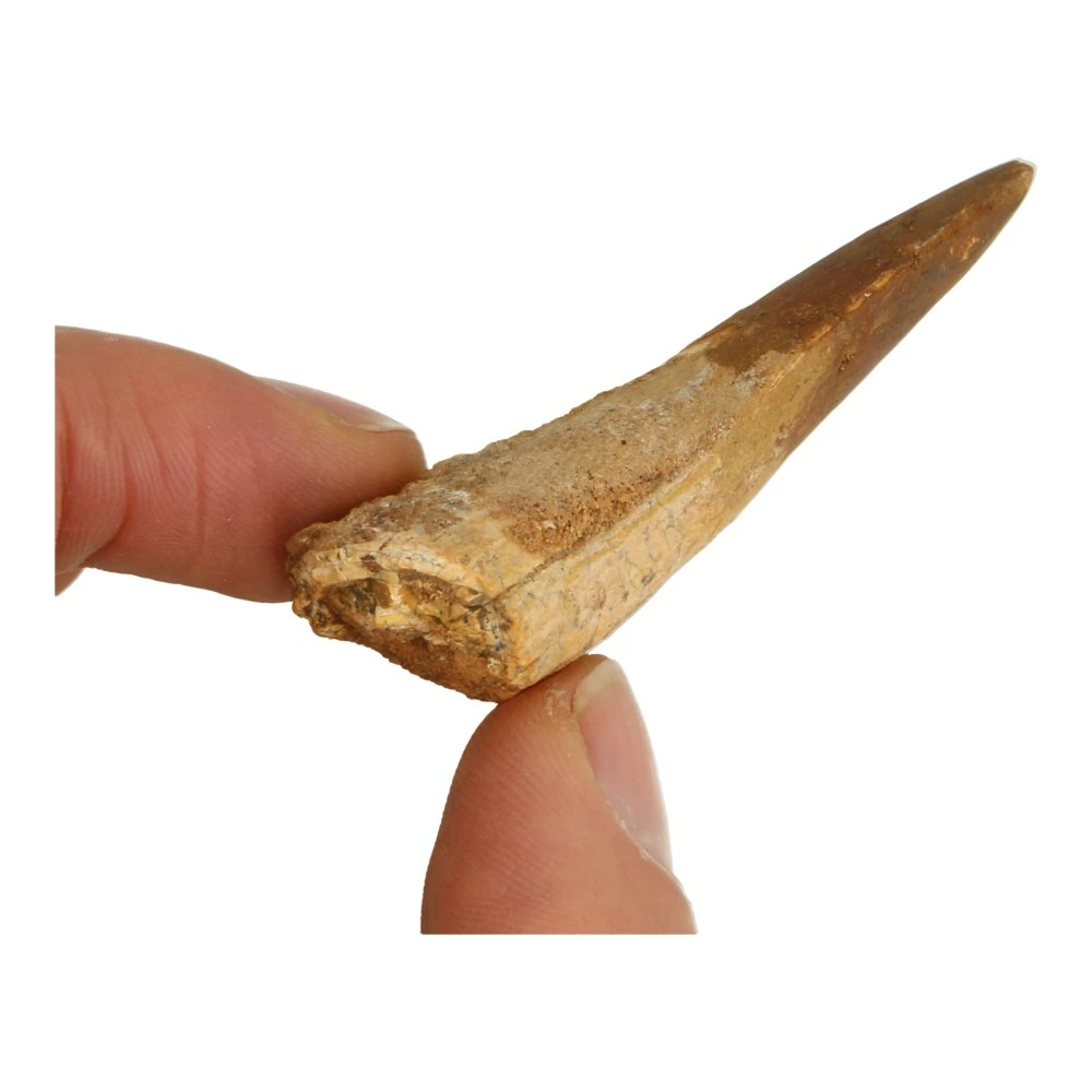 Gave Spinosaurus tand ‘nr3’ van maar liefst 7cm lang! Deze fossiele tand van een echte dinosaurus heeft een breedte van ongeveer 20mm en is ruim 17mm dik en is in de Kem Kem groep/bedding gevonden, in de grensstreek van Marokko met Algerije. Naar verluidt stroomde daar vroeger een rivier waar deze dieren in leefden. Je ontvangt de spinsaurus tand van de foto.