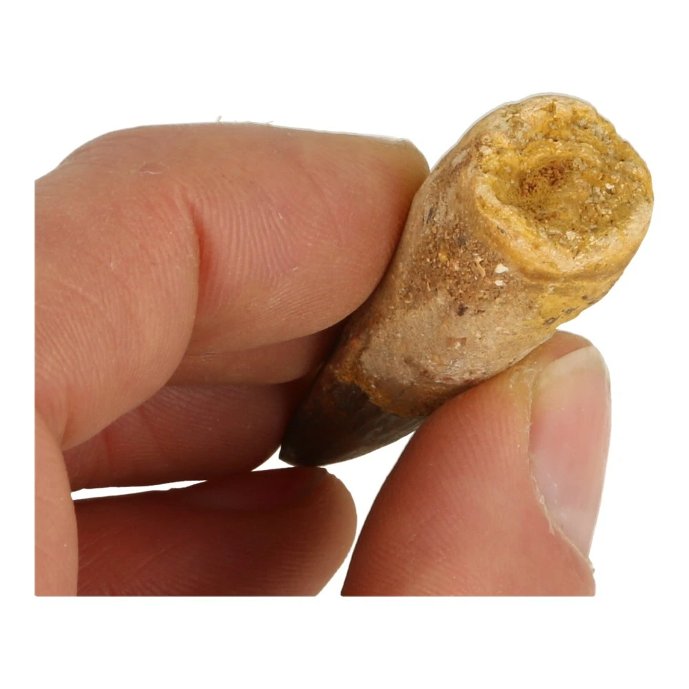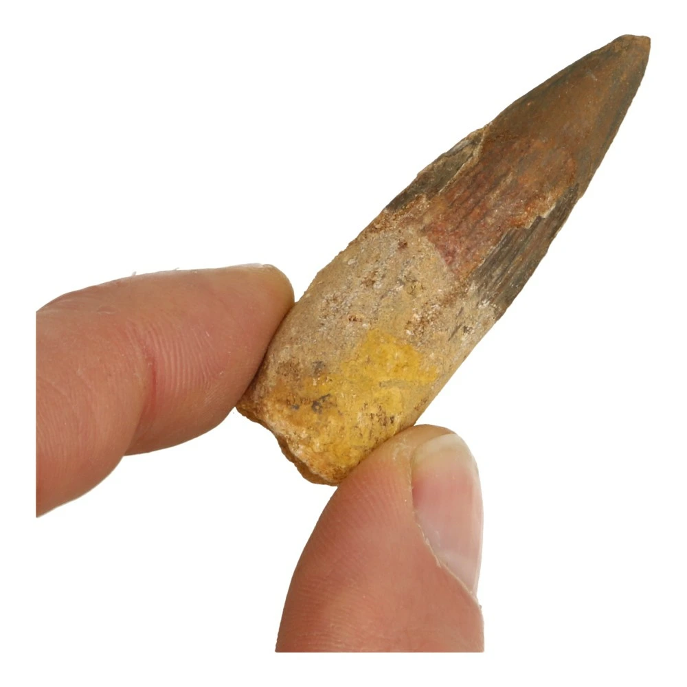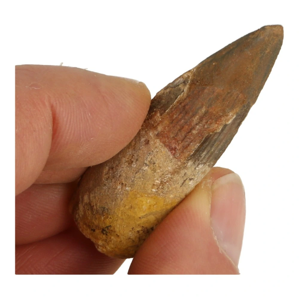 Gave Spinosaurus tand ‘nr8’ van ongeveer 58mm lang. Deze fossiele tand van een echte dinosaurus heeft een breedte van ongeveer 18mm en is ongeveer 15mm dik en is in de Kem Kem groep/bedding gevonden, in de grensstreek van Marokko met Algerije. Naar verluidt stroomde daar vroeger een rivier waar deze dieren in leefden. Je ontvangt de spinsaurus tand van de foto.