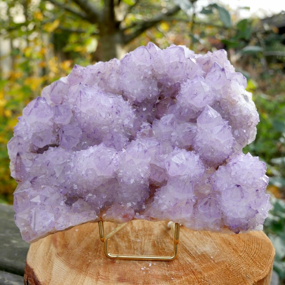 Bijzonder fraai spiritkwarts cluster groot ‘nr1’ uit Zuid-Afrika. Een zeer helder en fraai stuk, waarvan de energie je tegemoet spat. Mooi helder en goede kleur paars, hoge kwaliteit die we maar zeer zelden tegenkomen!