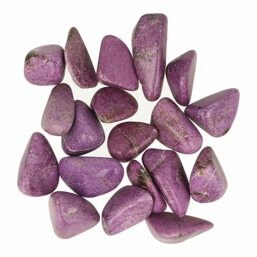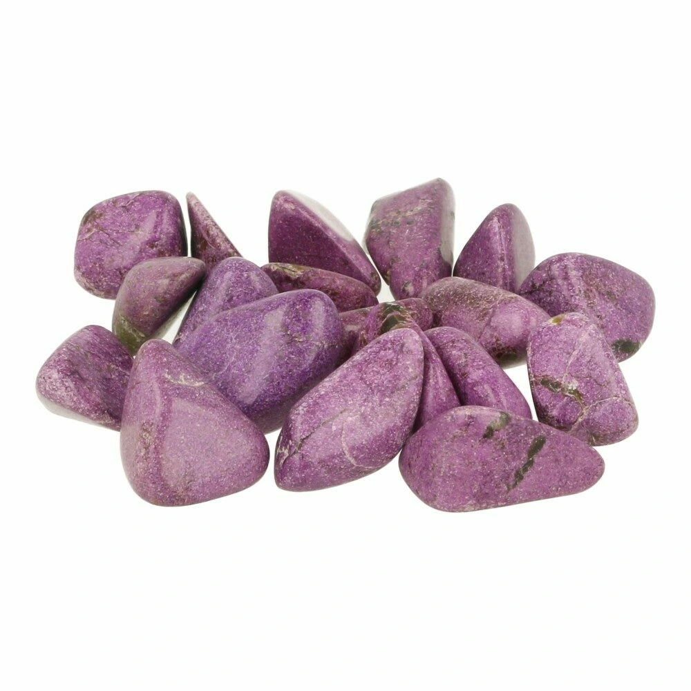 Fraaie paarse stichtiet trommelsteen of kleine knuffelsteen uit Zuid-Afrika. De afmeting van deze stichtiet trommelsteen is ongeveer 2,5-3cm aan de langste zijde. Je ontvangt een soortgelijke stichtiet trommelsteen als op de foto.