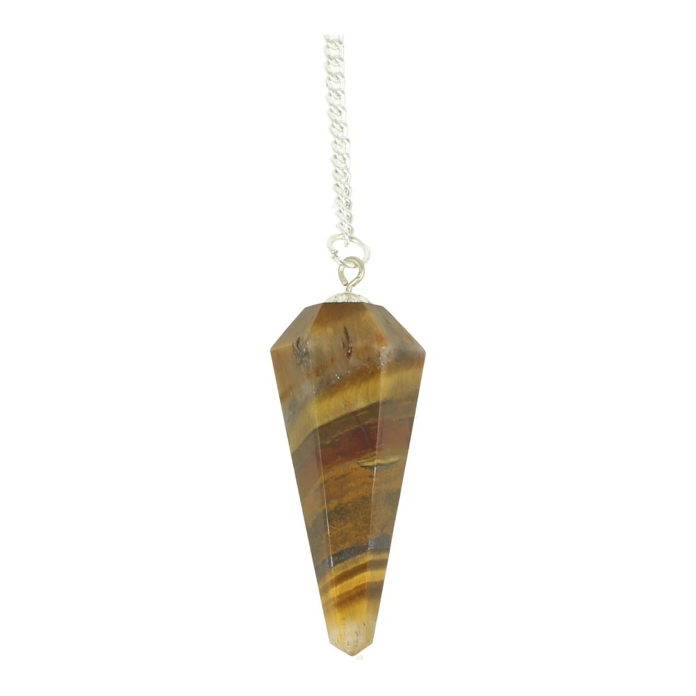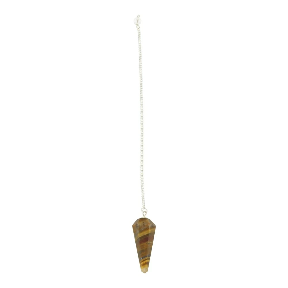 Fraaie tijgeroog pendel punt met een verzilverde ketting van 17cm. Je ontvangt een soortgelijke tijgeroog pendel als op de foto, de tekening wisselt onderling. De afmeting van de tijgeroog pendel is ongeveer 4cm hoog en op het breedste punt ongeveer 1,5cm breed.