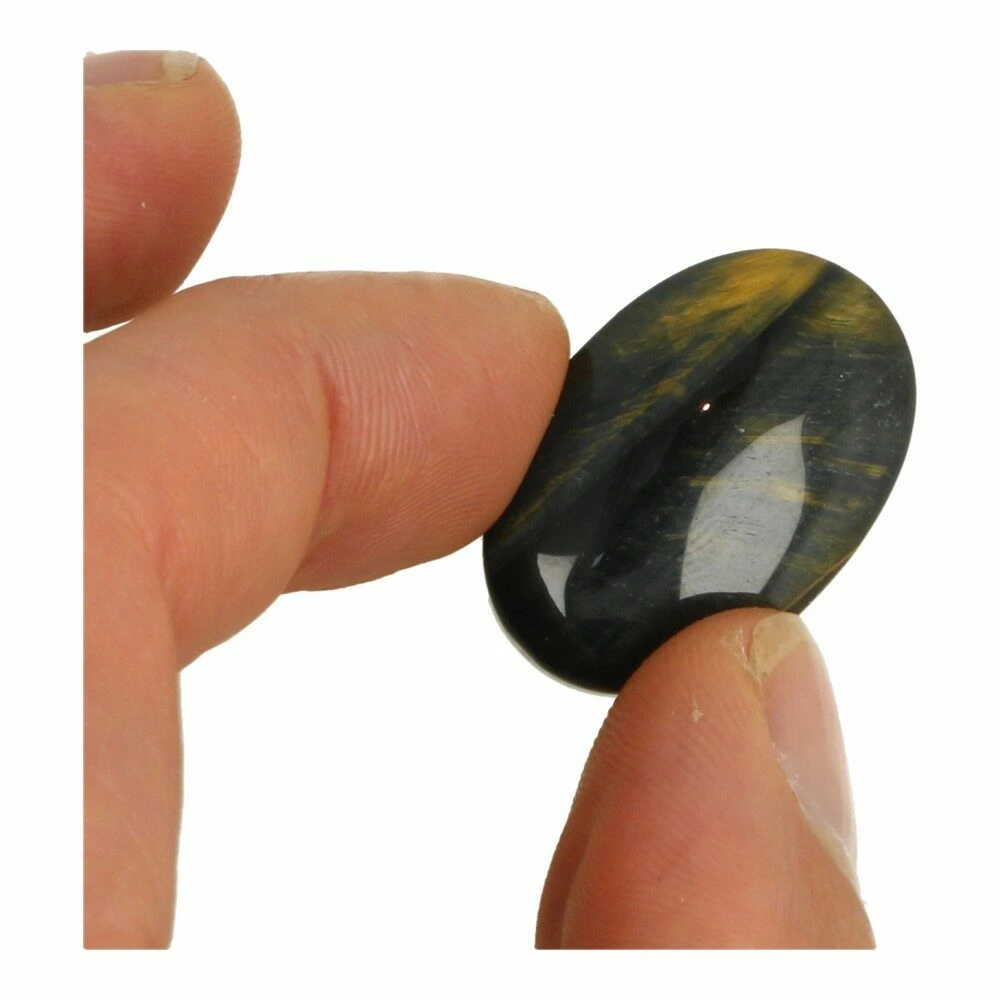 Prachtige A-kwaliteit geslepen tijgeroog zaksteen met de kenmerkende goud-bruine schittering in het licht. Iedere tijgeroog zaksteen is uniek, je ontvangt van ons een gelijksoortige steen als op de foto. De kleur kan verschillen, er zijn ook meer blauwe en meer rode tijgeroog zakstenen bij. De afmeting van deze tijgeroog zaksteen is ongeveer 2cm breed, 3cm lang en 1 cm dik.