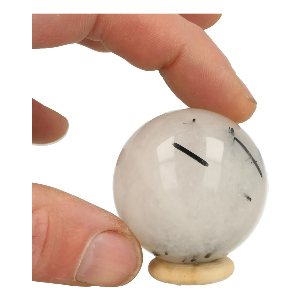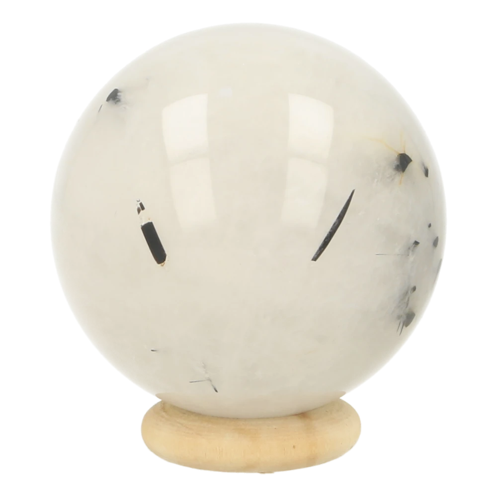 Fraaie toermalijnkwarts bol met een diameter van 44mm en houten ringetje uit China. Je ontvangt de toermalijnkwarts bol van de foto. Deze fraaie witte bergkristal met zwarte toermalijn kristallen erdoorheen zien we niet vaak. Mooi om te zien en met zachte helende energie. We hebben nog een aantal bollen toermalijnkwarts in deze maat op voorraad, dus zoek je net een andere? Laat het ons weten per app of email en we sturen je foto’s.