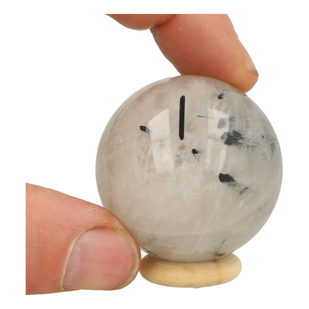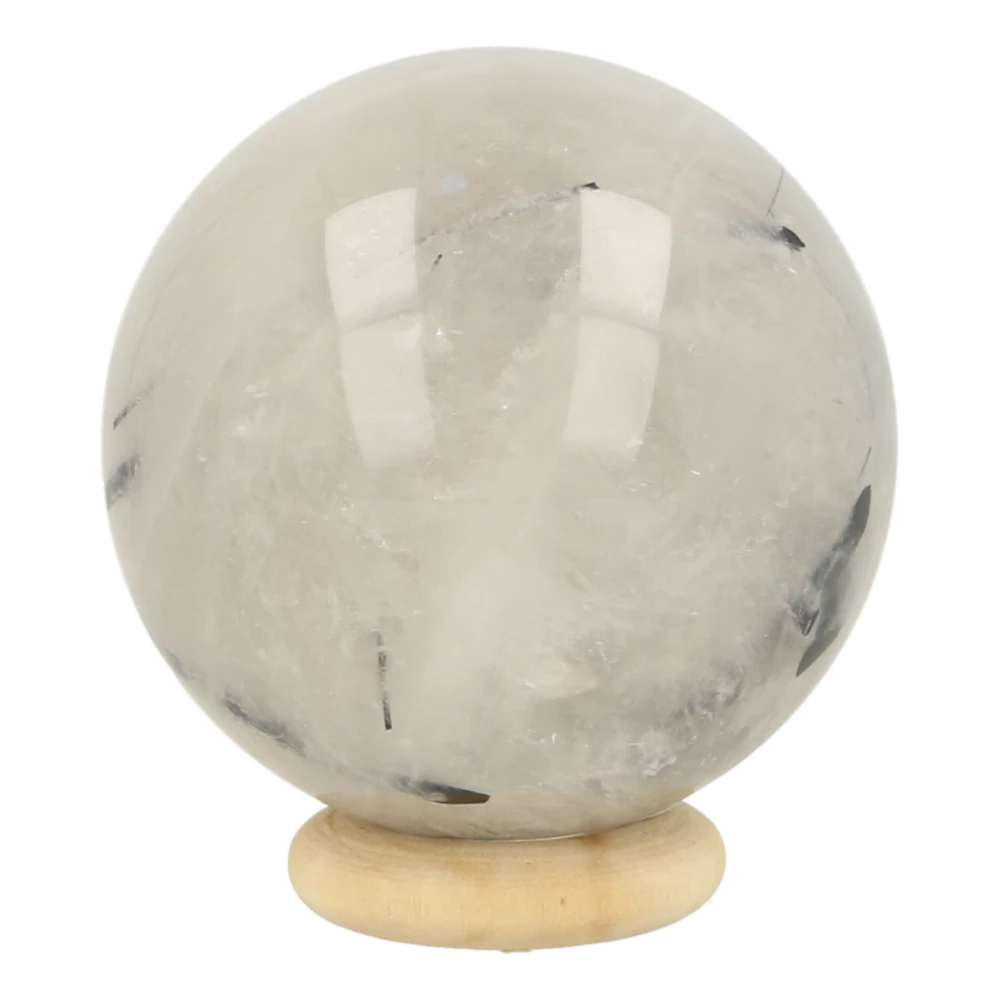 Fraaie toermalijnkwarts bol met een diameter van 44mm en houten ringetje uit China. Je ontvangt de toermalijnkwarts bol van de foto. Deze fraaie witte bergkristal met zwarte toermalijn kristallen erdoorheen zien we niet vaak. Mooi om te zien en met zachte helende energie. We hebben nog een aantal bollen toermalijnkwarts in deze maat op voorraad, dus zoek je net een andere? Laat het ons weten per app of email en we sturen je foto’s.