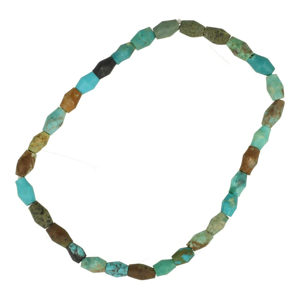 Mooie turquoise of turkoois armband met sierlijke kralen van 4mm diameter op rekbaar koord. De turquoise komt uit Pakistan en is echt handwerk. Je ontvangt een soortgelijke turquoise armband als op de foto, ze zitten het mooiste als ze niet te ruim zijn, door de langwerpige kralen komt de armband dan mooi om je pols te vallen. Ze zijn onderling zeer gelijkwaardig.