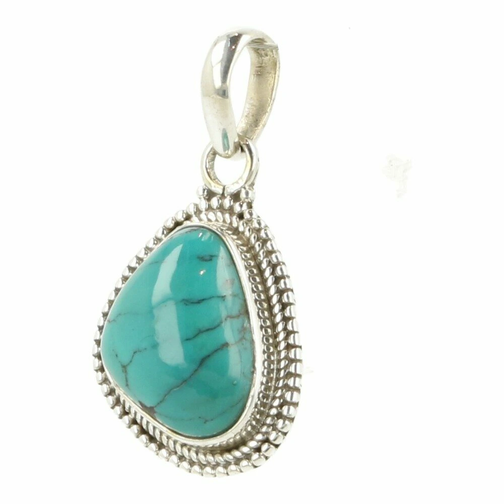 Mooie, echte turquoise hanger in zilver ‘nr5’. Hoge kwaliteit echte turkoois hanger in volledig juwelierskwaliteit 925 sterling zilver. De afmeting van de turquoise steen in de hanger is ongeveer 15mm hoog en 11mm breed. Je ontvangt de turquoise hanger in zilver van de foto.