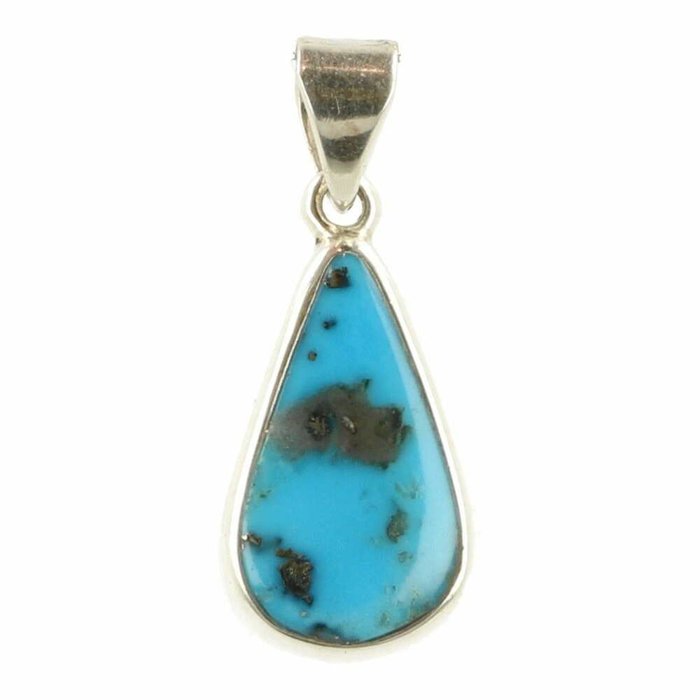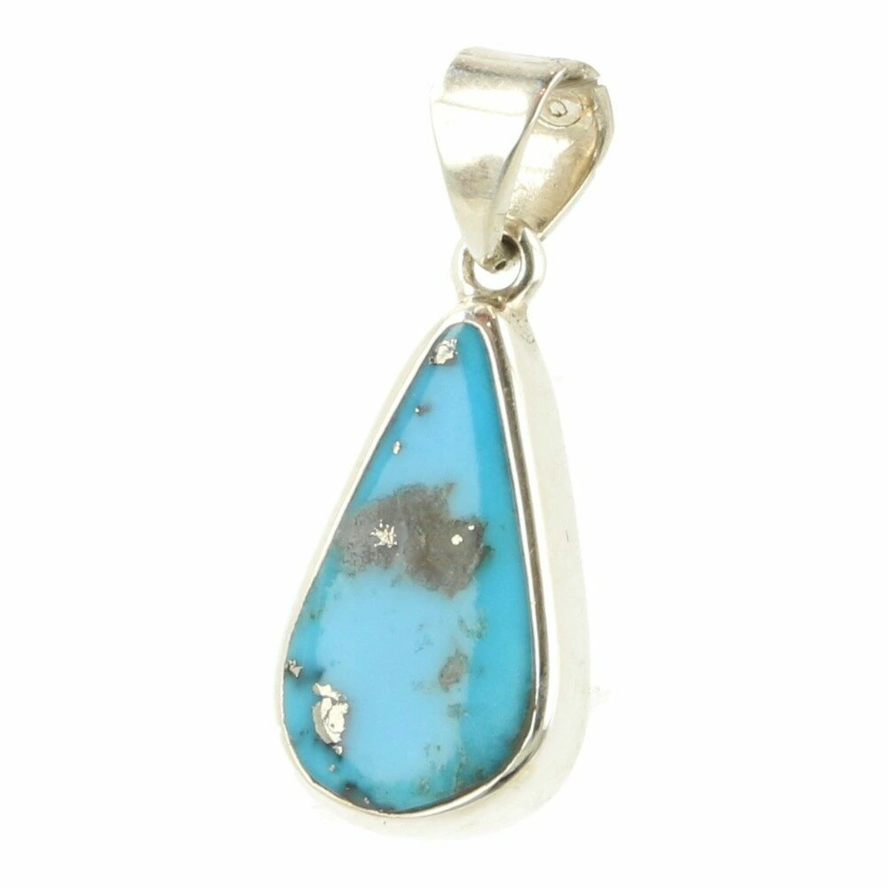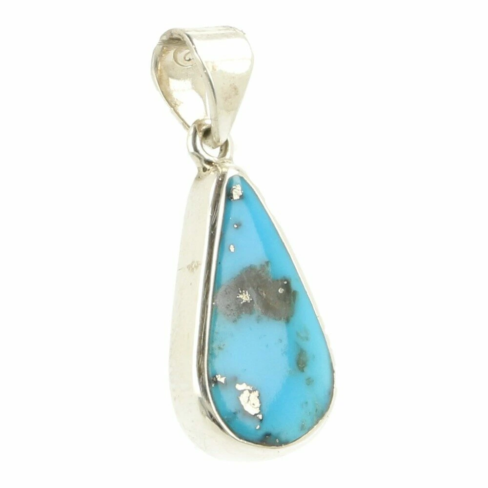 Mooie, echte turquoise hanger in zilver ‘nr7’ met pyriet. Hoge kwaliteit echte turkoois hanger in volledig juwelierskwaliteit 925 sterling zilver. De afmeting van de turquoise steen in de hanger is ongeveer 19mm hoog en 10mm breed. Je ontvangt de turquoise hanger in zilver van de foto. De gouden pyriet geeft deze hanger extra helderheid en aarding.