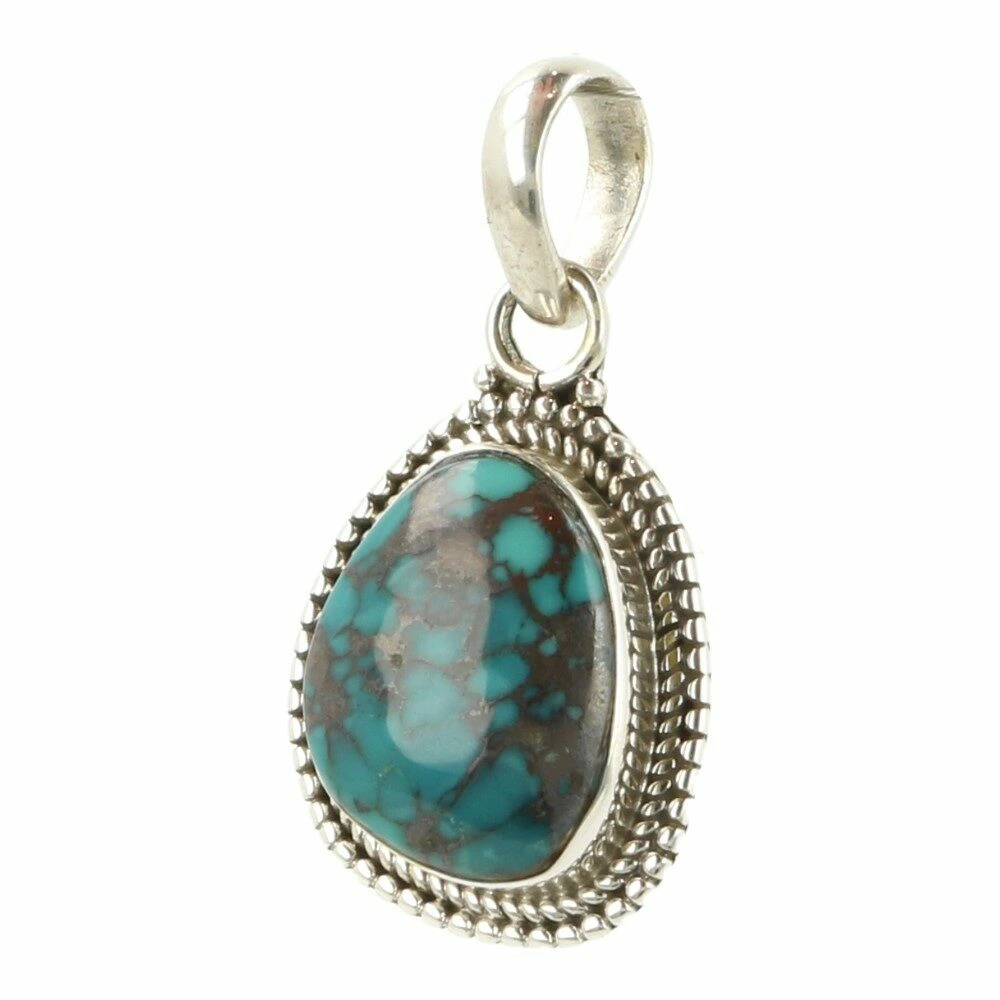 Mooie, echte turquoise hanger in zilver ‘nr9’. Hoge kwaliteit turkoois hanger in volledig juwelierskwaliteit 925 sterling zilver. De afmeting van de turquoise steen in de hanger is ongeveer 14mm hoog en 11mm breed. De turquoise komt uit Tibet. Je ontvangt de turquoise hanger in zilver van de foto.