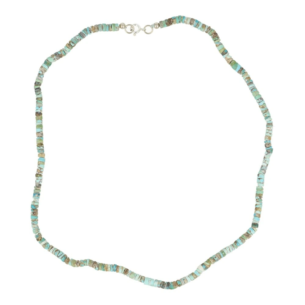 Mooie turquoise ketting van echte turquoise kralen met diameter van 4mm en een lengte van 45cm. Het slotje van deze turkoois ketting is van zilver. De turkoois van de ketting komt uit Iran. Je ontvangt een soortgelijke turquoise ketting als op de foto, ze zijn onderling zeer gelijkwaardig.