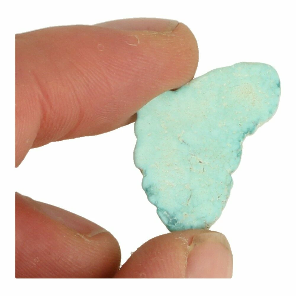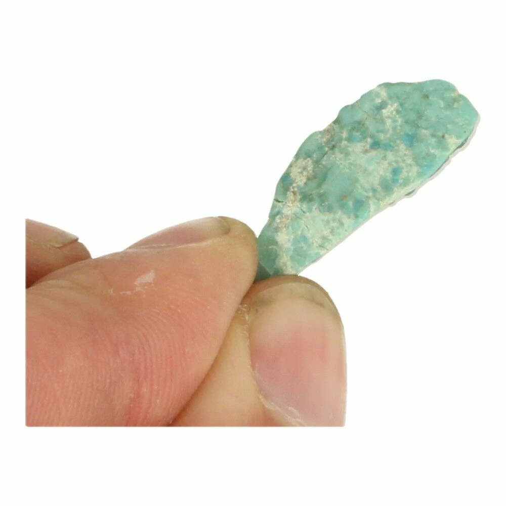 Fraaie lichtblauwe turquoise ruw van ongeveer 1,5-2cm lang, gedeelte met zaagsnedes. Leuke stukjes echte turquoise voor in de verzameling of om bij je te dragen. Je ontvangt een soortgelijk stukje turquoise ruw als op de foto.