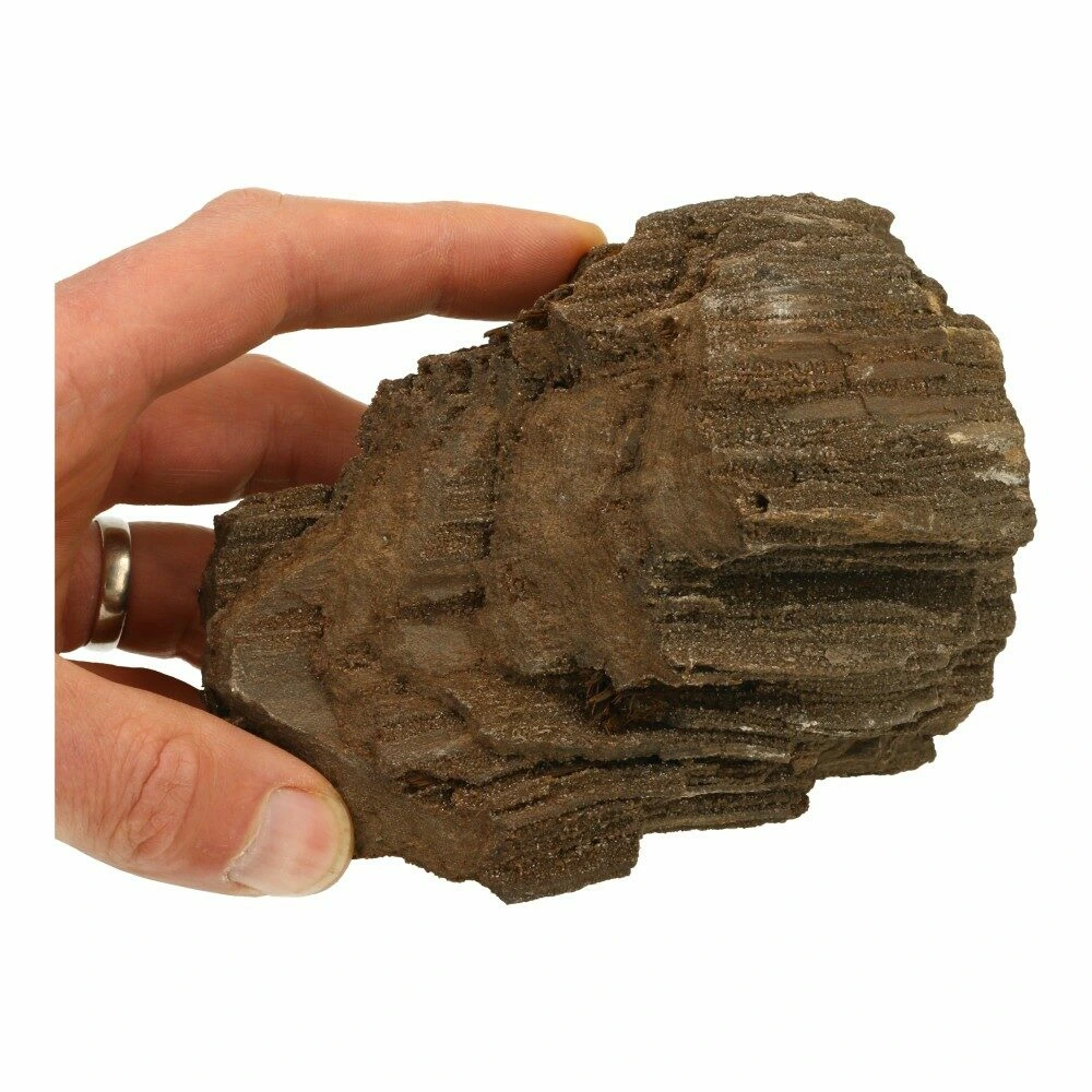 Dit betekent dat het oorspronkelijke hout miljoenen jaren onder sediment bedolven heeft gelegen terwijl silica-rijk grondwater de organische houtstructuren langzaam verving door kwarts. De karakteristieke glinstering van deze versteende sequoia wordt veroorzaakt door de groei van microscopische kwartskristallen binnen de houtcellen, waardoor het fossiel zijn warme bruine kleur met natuurlijke sparkle krijgt.