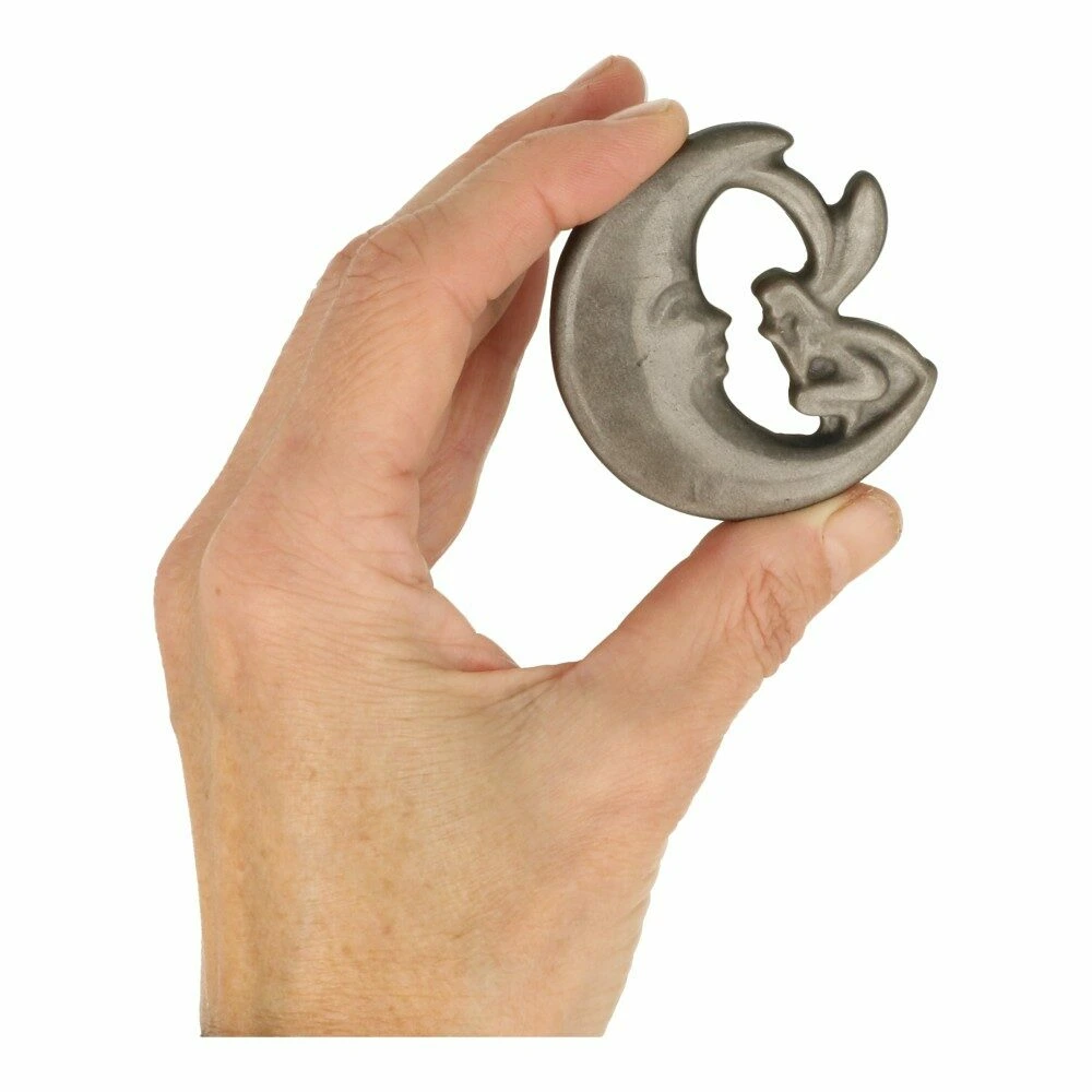 Mooie zwarte met zilveren glans obsidiaan maan met fee figuur met een diameter van 5,5-6cmm. In het licht komt de zilveren glans van de obsidiaan maan naar voren, in de schaduw lijkt deze meer zwart. Je ontvangt een soortgelijke zilverglans obsidiaan maan met fee als op de foto, de kwaliteit is gelijkwaardig.
