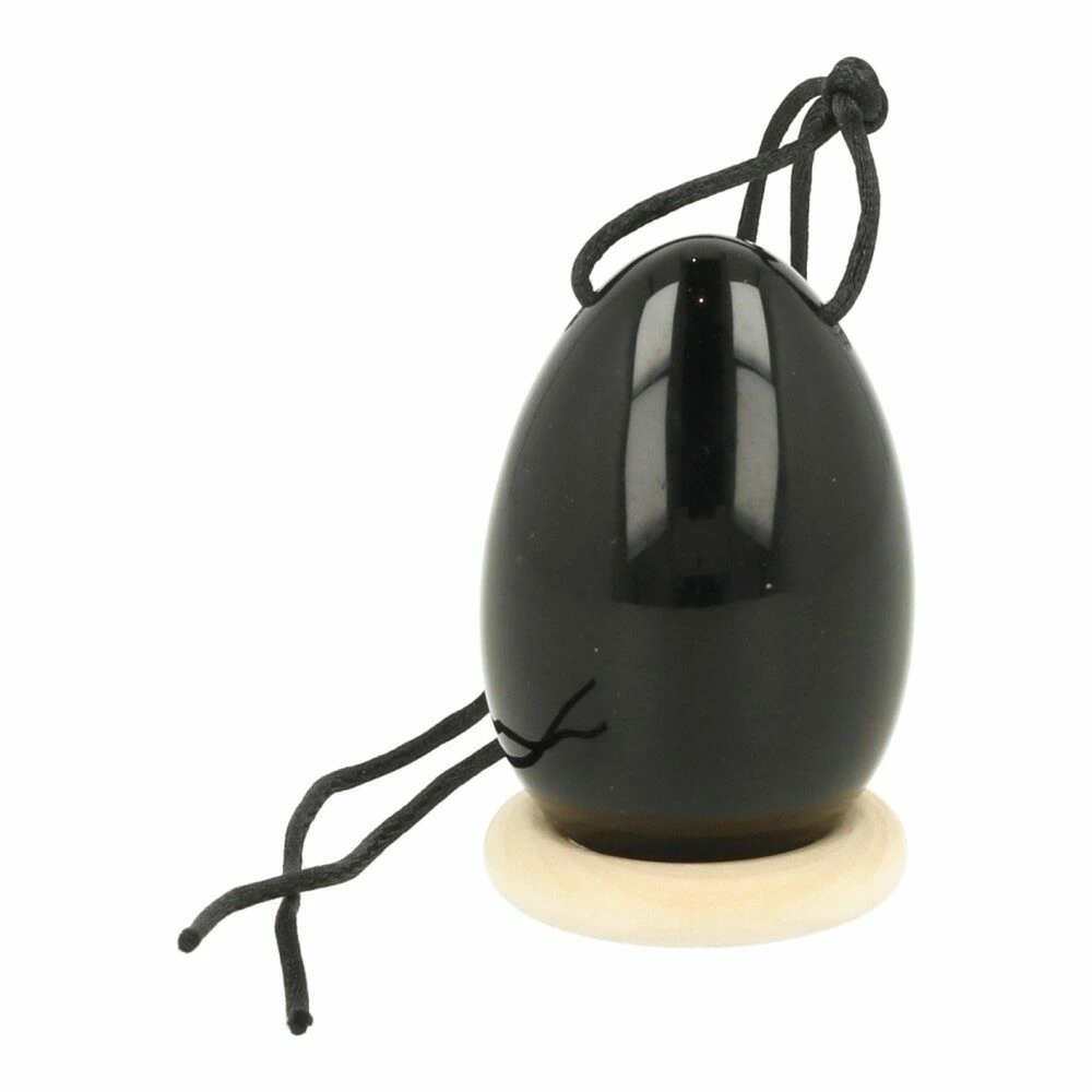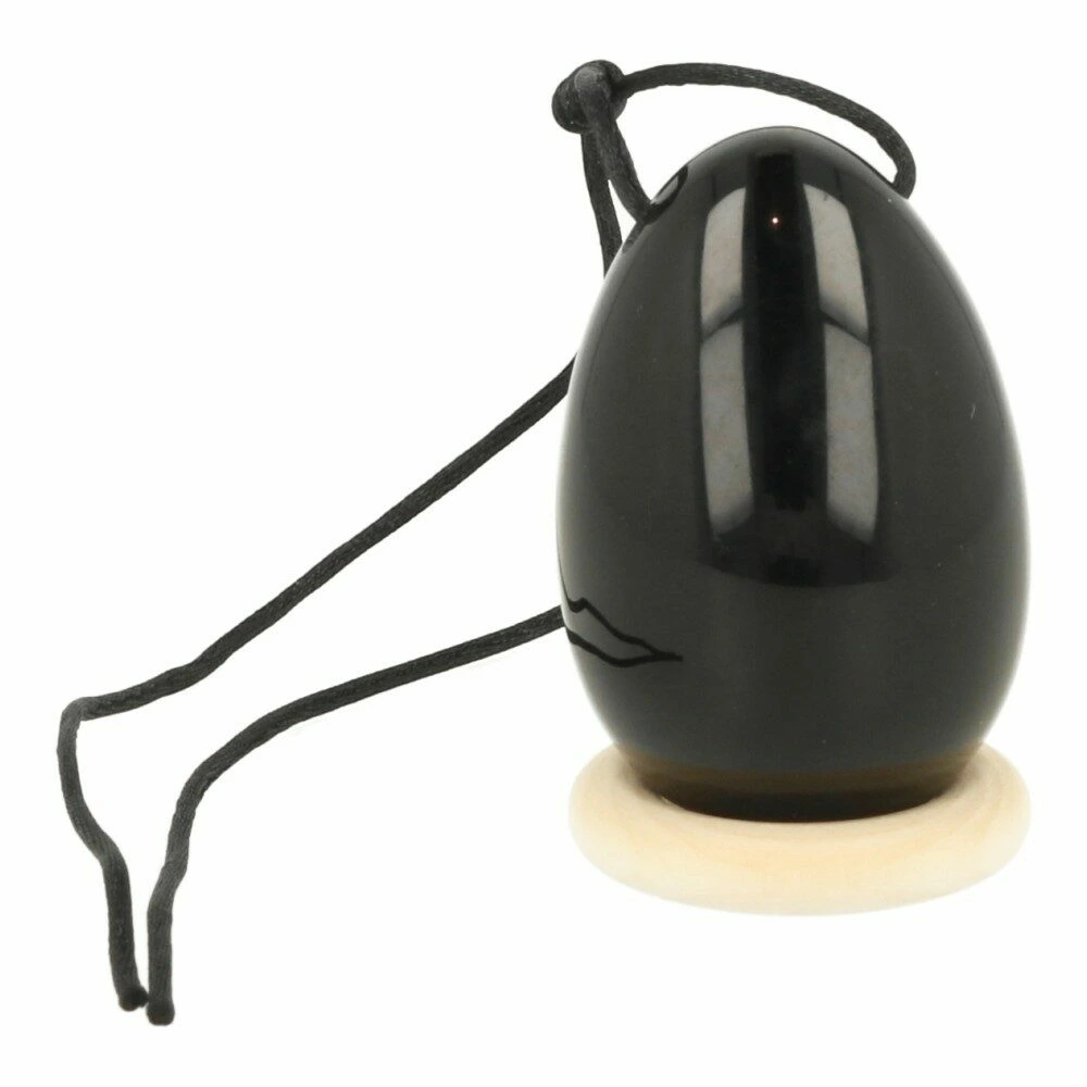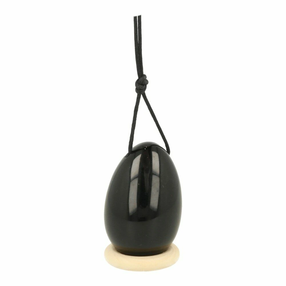 Fraaie glanzende zwarte obsidiaan yoni ei met een gaatje. De afmeting van dit zwarte obsidiaan yoni ei is 45mm hoog en 30mm diameter. Het gaatje dient om een touwtje door te doen als je dat prettig vindt. Je ontvangt een soortgelijk zwarte obsidiaan yoni ei als op de foto, inclusief houten ring. Lees meer over het gebruik van yoni eieren op de pagina yoni ei.
