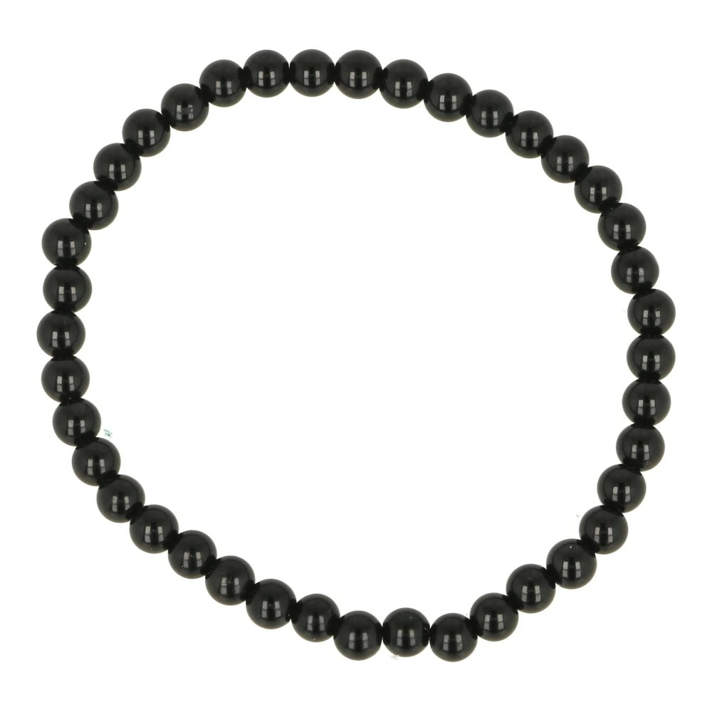 Mooie zwarte toermalijn armband met kralen van 4mm aan rekbaar koord. Je ontvangt een soortgelijke armband als op de foto. De lengte van de armband past bij een polsomtrek van ongeveer 17-18cm en daardoor geschikt voor dames en heren met smallere tot normale polsen.
