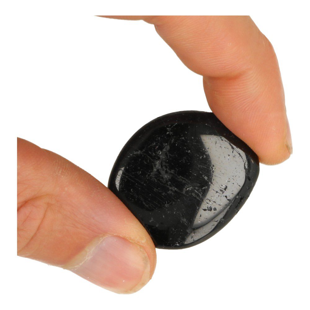 Fraai gepolijste zwarte toermalijn zaksteen of duimsteen (worrystone) van ongeveer 3,5-4,5 cm lang, 2,5-3,5cm breed en 1cm dik. Je ontvangt een soortgelijke zwarte toermalijn zaksteen of oplegsteen als op de foto. De onderzijde van de zwarte toermalijn zaksteen is een beetje hol, zodat je er je duim in kunt zetten. Deze zwarte toermalijn zakstenen zijn zeer geschikt om bij je te dragen, maar ook om te gebruiken bij opleggingen of edelsteen therapie.