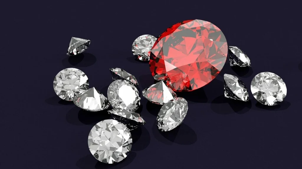 - Rode diamant — extreem zeldzaam, naar schatting bestaan er slechts rond de 30 exemplaren ter wereld. De grootste rode diamant die ooit werd gevonden is de Moussaieff Red. Deze werd gekocht door Moussaieff Jewelers, aan wie hij zijn huidige naam te danken heeft. De waarde van deze rode diamant wordt als onschatbaar beschouwd. Prijzen lopen op tot 1-2 miljoen dollar per karaat.